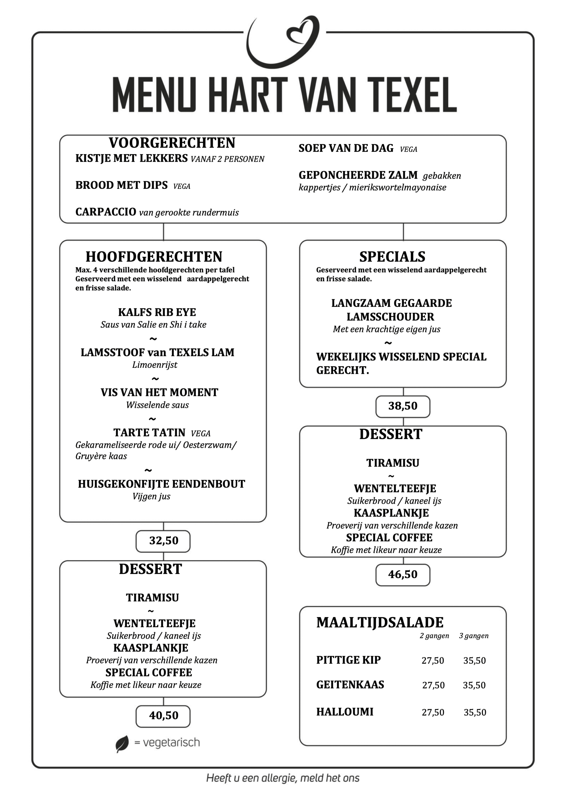 Voor reserveringen bel 06 10 51 31 35 of mail naar info@hartvantexel.com